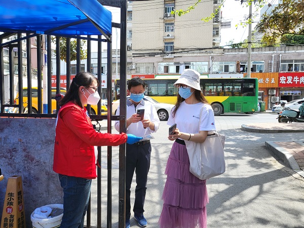 手持测温枪,身穿红马甲,一天两班,从7点半到21点半,抗疫装备齐全的机关党员在小区入口对出入人员进行体温测量、“两码”查验,提供酒精喷壶消杀等,并积极做好最新防疫政策宣传。