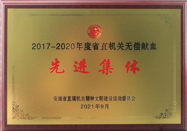 近日,安徽省直机关精神文明建设活动委员会发布了《关于省直机关无偿献血先进集体、先进个人的表彰通报》,从128家省直机关单位中,评选并授予好博网页版_好博(中国)等23个单位“2017-2020年度省直机关无偿献血先进集体”荣誉称号。同时,好博网页版_好博(中国)刘村、王宝全获得“省直机关无偿献血先进个人”荣誉称号。