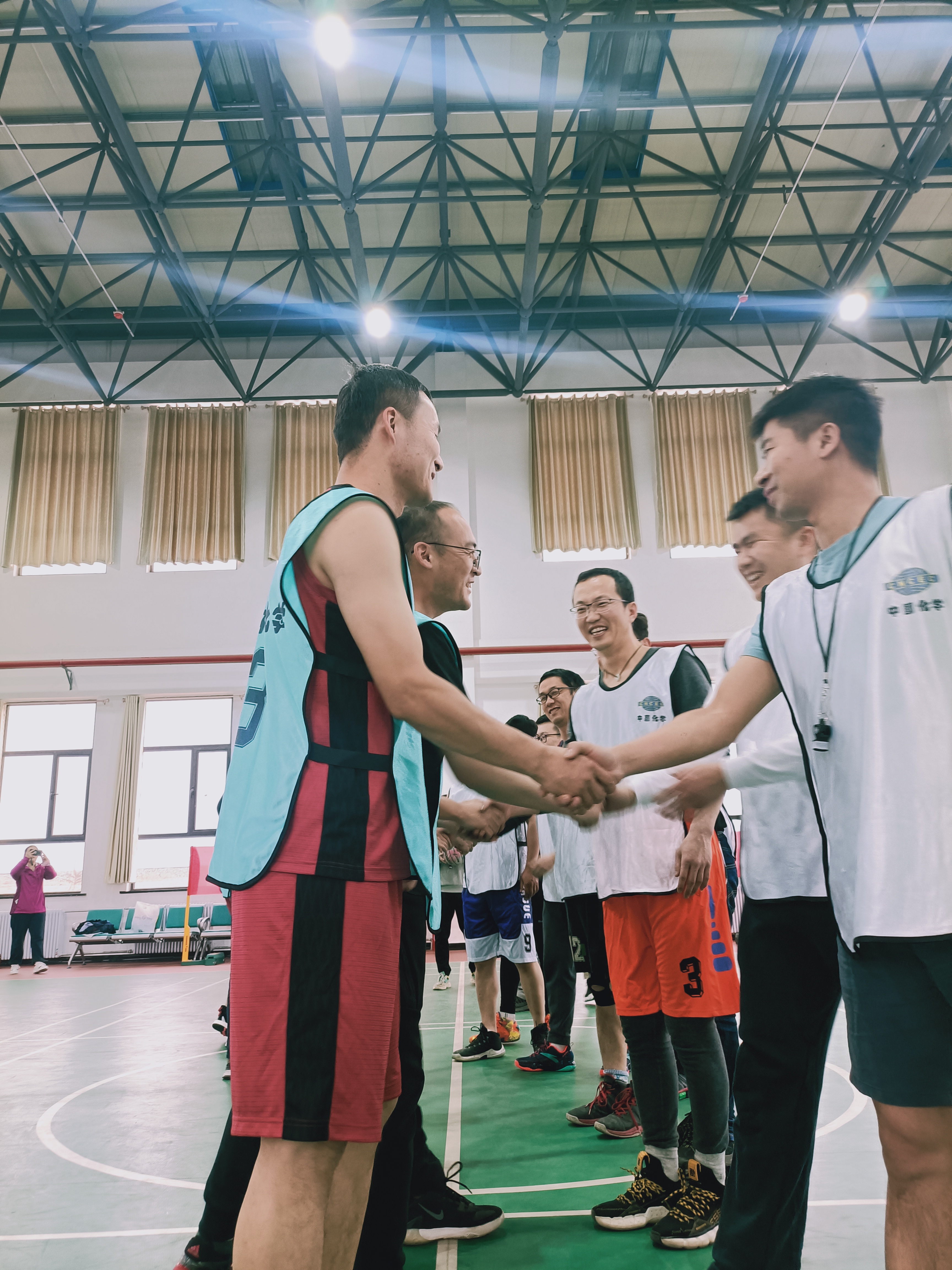 比赛开始后,两支球队都带着饱满的热情投入比赛,双方球员展开了激烈的攻防,大家健步如飞、奋力拼抢,迅捷的突破、精准的投篮,队员之间团结协作,比分在你争我赶中交替上升。在场观众欢呼雀跃,现场气氛异常高涨。比赛最终以42:40的比分落下帷幕,业主项目部险胜,完美的诠释了在现场建设中双方步调一致、携手共进,保证集团公司制定的三级计划和项目各里程碑节点顺利按时完成。比赛结束后,两队球员互相握手致意。