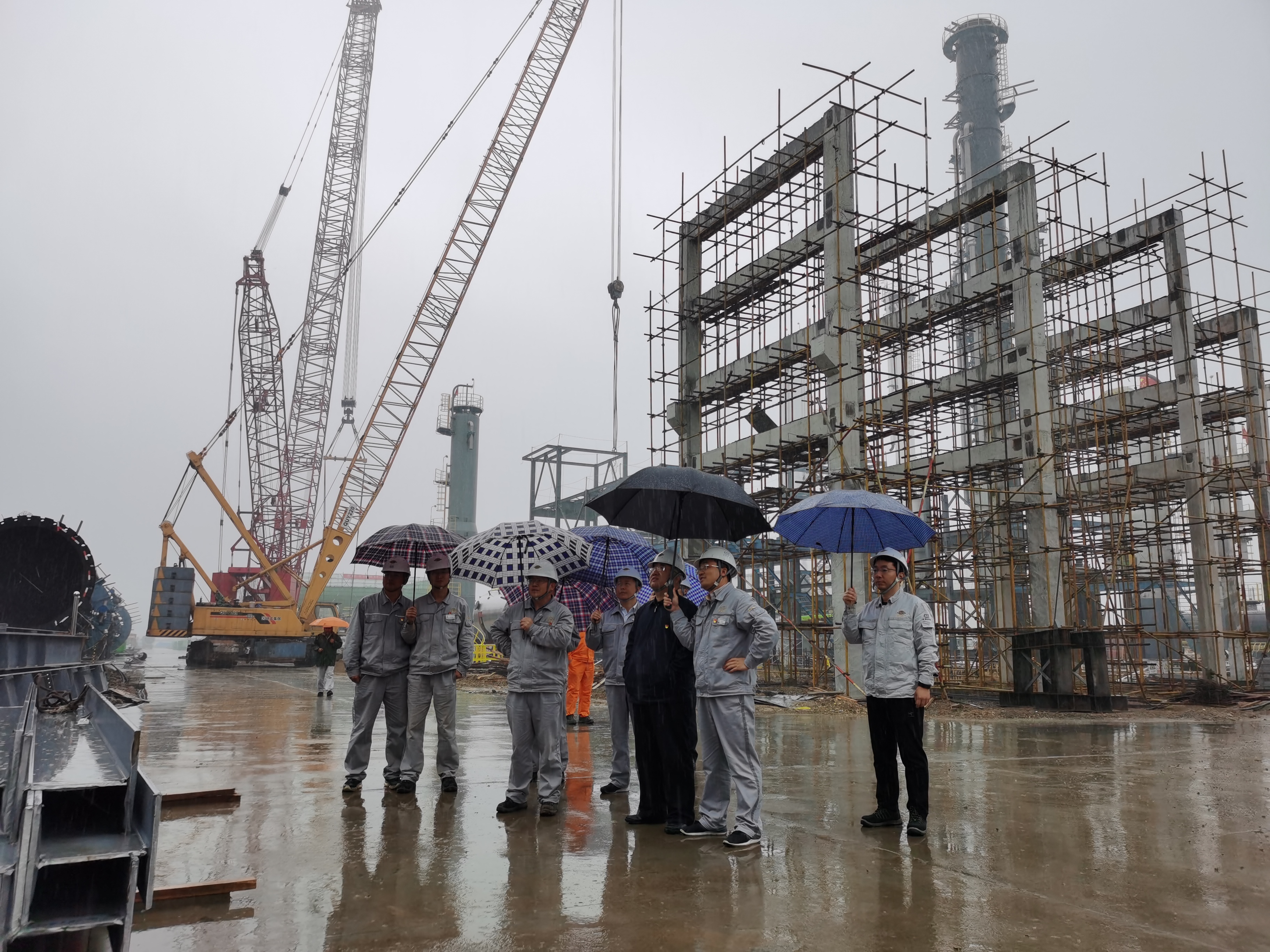 桑艳军一行深入项目施工现场,实地查看了各施工装置、安全体验区等区域,对项目管廊混凝土地面预制及项目无土化安装施工予以高度评价。他指出,这些举措不仅减少了现场安全隐患,还给现场文明施工创造了极其便利的条件。