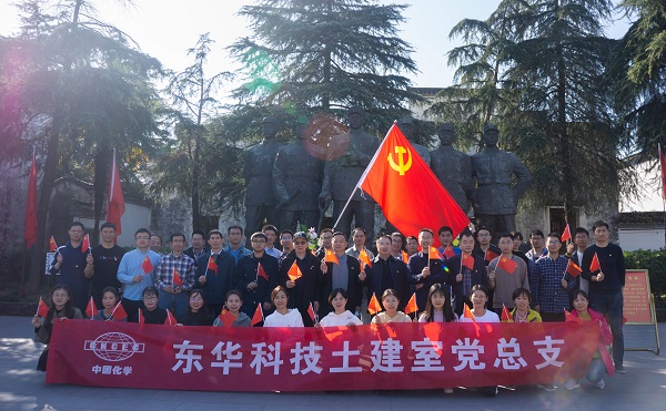 在岩寺新四军军部旧址博物馆,党员同志们向革命烈士敬献了花篮,桑艳军带领党员同志们重温了入党誓词,并给党员同志们上了一堂别开生面的党课,发表了《追忆峥嵘岁月、牢记初心使命、助力东华发展》的主题讲话,勉励党员同志们铭记历史,继承先烈遗志,在新时代下,强化责任,敢于担当,切实做好本职工作,为东华发展建言献策。
