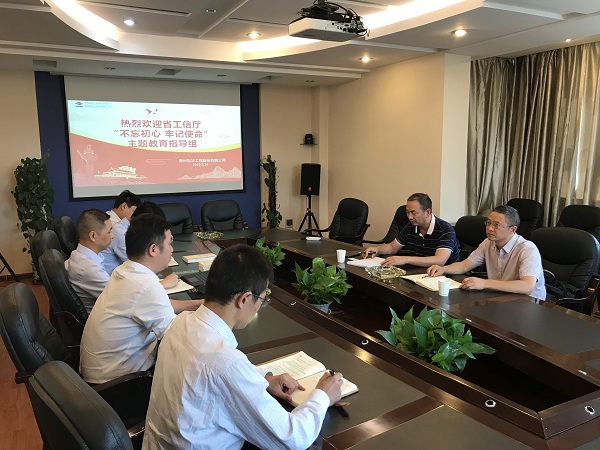 9月24日下午,贵州省工信厅第二批教育工作指导组组员姚方丛、姚政权一行莅临贵州东华,督查“不忘初心、牢记使命”主题教育开展情况,贵州东华党政领导班子成员、各支部书记参加会议。