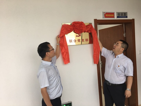 成立大会由闫梦辉主持,会上曹幼虎首先宣读了公司党委《关于成立芜湖六郎水务——东至水务联合党支部的通知》,通知任命苏多清同志为联合党支部书记。桑艳军寄语新支部按照支部工作条例做好各项工作,把党建工作作为提振士气、振奋精神的抓手;要求做好经济活动分析工作,与当地党的基层组织建立密切联系;注意培养实业投资方面的人才,并为公司的投资拓展寻找发展机会。桑艳军勉励新支部的党员同志们要时刻牢记初心和使命,提升业务水平,增强凝聚力,把支部建设成为一支敢拼敢闯、奋发有为的队伍,为东华的创业转型贡献自己的力量。最后桑艳军为联合党支部揭牌并赠送学习资料。